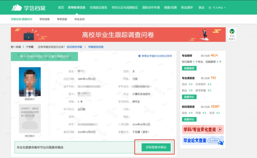 2.选择学籍,查看对应采集码