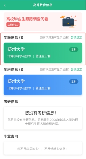 1.关注学信网公众号,绑定学信网账号,点击“学信账号”,查看学籍学历信息