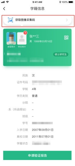 3.选择学籍,查看对应采集码