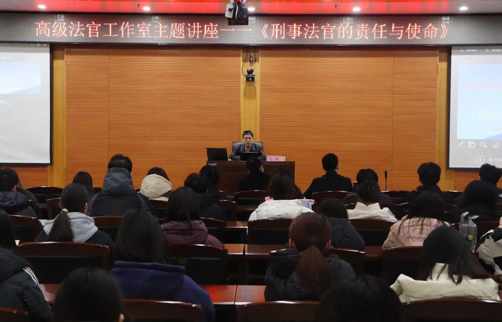 12月8日,学校高级法官工作室邀请石家庄市长安区人民法院党组书记、院长王伟来校作主旨讲座,学校期刊社社长马章民教授、李世清教授作为与谈人参加讲座活动,百余名法律专业学子聆听了讲座内容。